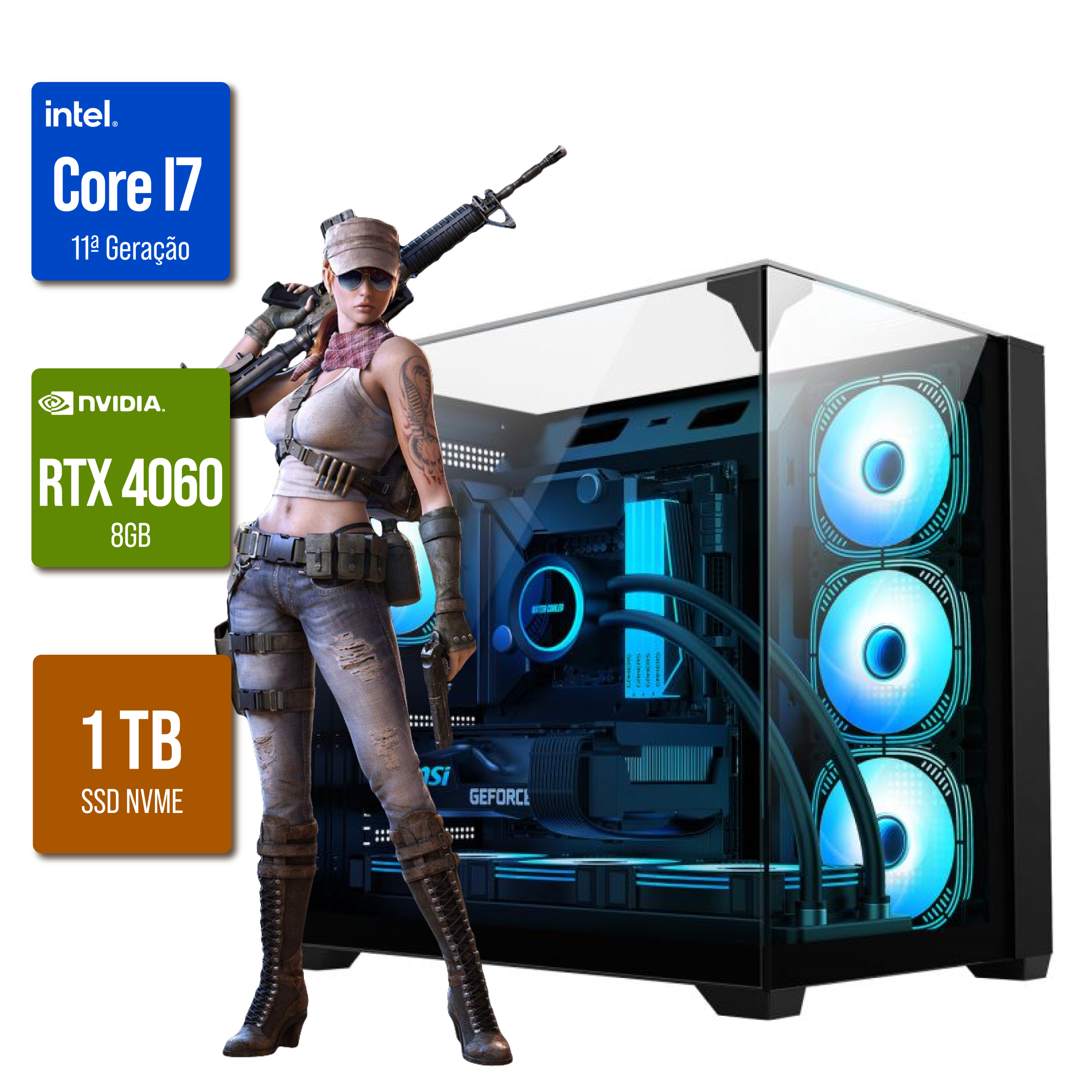 Computador Gamer Intel I7 11ª Geração / RTX 4060 8GB / 16GB DDR4 / NVME 512GB