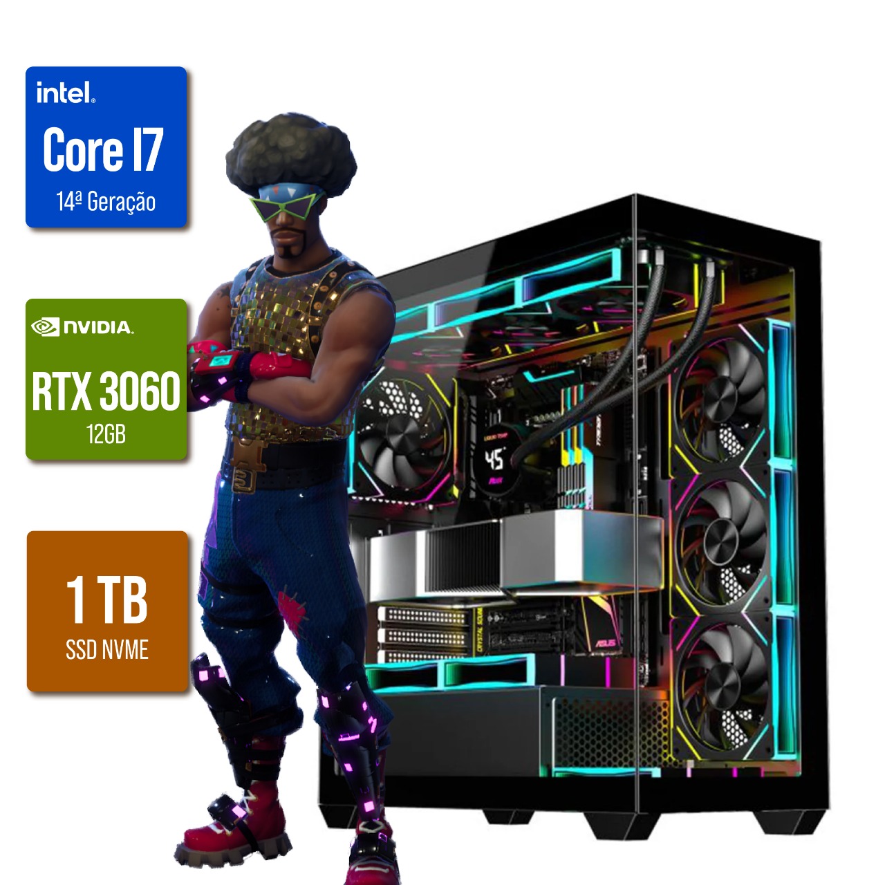 Computador Gamer Intel I7 14ª Geração / 16GB DDR4 / NVME 512GB / VÍDEO RTX 3060 12GB