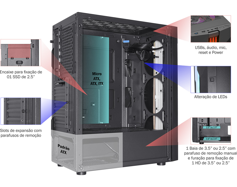 Placa-mãe compatível: ATX, MICRO ATX ou ITX